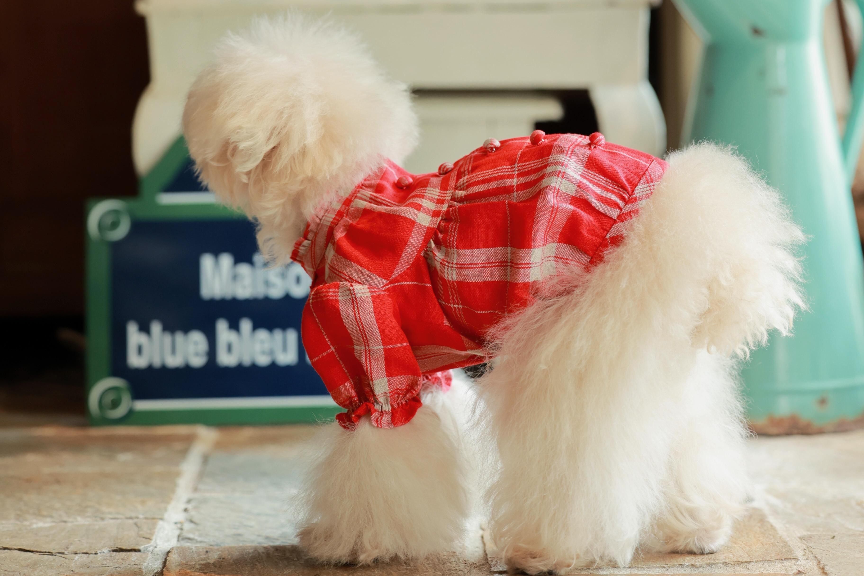 フレンチギャザーブラウス・キッチンチェック ( YECK,RDCK)(予約商品)